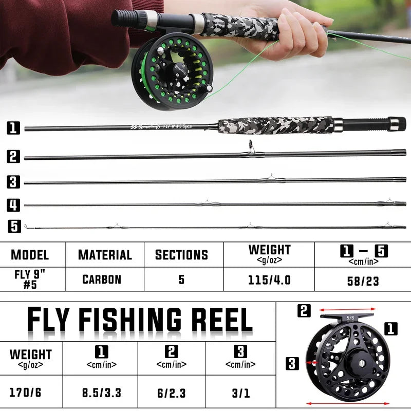 5/6 Fly Fishing Combo 2.7m 5 Section Carbon Fiber Fly Rod with Ultralight Weight Fly Fishing Reel Fishing Tackle